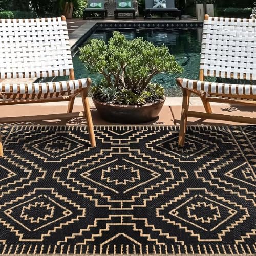 Tapis de sol extérieur pour terrasse de piscine, jardin et plancher bois ,Tapis antidérapant lavable, petit pour entrée ou grand tapis imperméable, revêtement de sol polyvalent (Black, 160 X 230 cm)