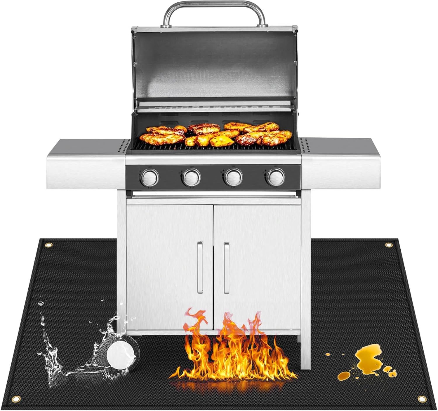 Khongoo Tapis ignifuge pour barbecue - Protection du sol pour terrasse - Tapis de barbecue d'extérieur facile à nettoyer - Pour barbecue à gaz Weber - 75 x 120 cm