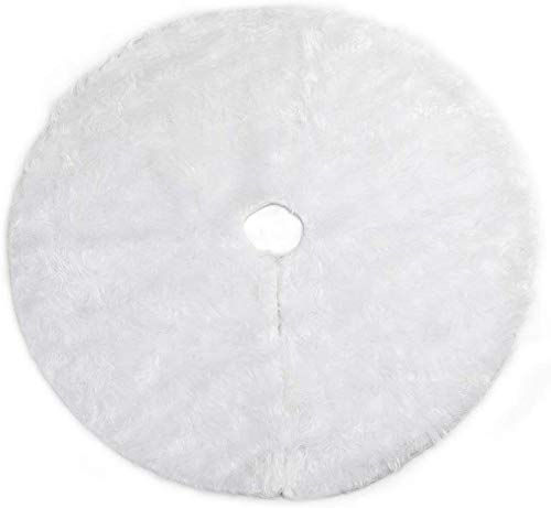 BAKAJI Tapis de Jupe pour Base d'arbre de Noël diamètre 90 cm en Tissu Doux en Peluche Blanc Effet Neige enneigé décorations de Noël