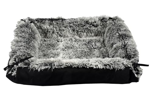Bobby Poilu Tapis de lit pour Chien et Chat Extra Doux en Peluche, Lavable en Machine, Noir/Blanc, 80 x 60 x 5 cm