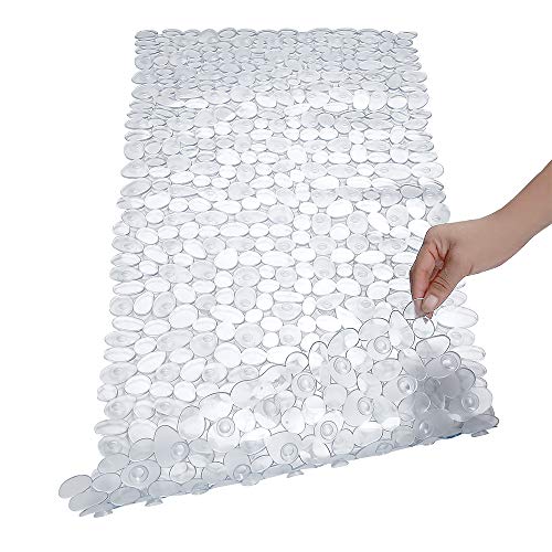 Originbest SONGZIMING Tapis de Douche - Tapis de Bain - Aspect Pierre - Matériau Doux pour la Peau - Antidérapant - en Caoutchouc Naturel - avec ventouses - 88 x 40 cm - Blanc Transparent
