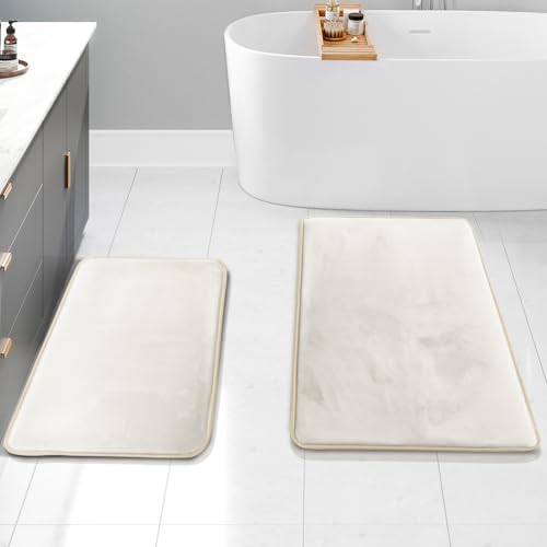 Clara Clark Tapis de Bain Ultra Doux, antidérapant et Absorbant, en Velours et Mousse à mémoire de Forme, 43,2 x 61 cm, 50,8 x 81,3 cm, Blanc
