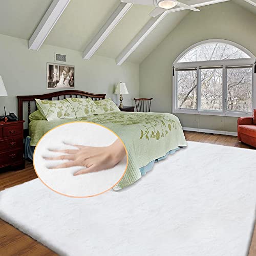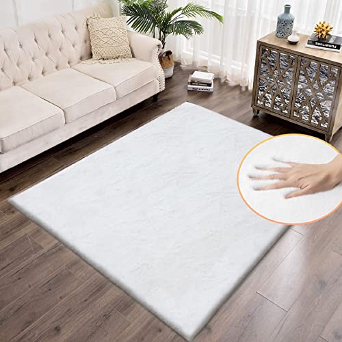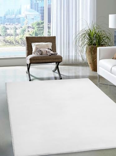 ORINOVA Tapis Blanc Moelleux Chambre 150x240 cm Fausse Fourrure Doux Tapis Salon Tapis Lavable Poil Ras White Fluffy Area Carpet Rectangulaire
