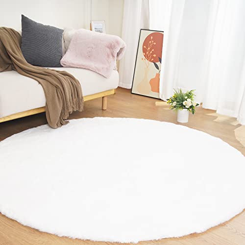 Ghouse Tapis Rond Blanc Chambre 150cm Moelleux Tapis Fausse Fourrure Doux Salon Lavable Descente De Lit Poil Ras