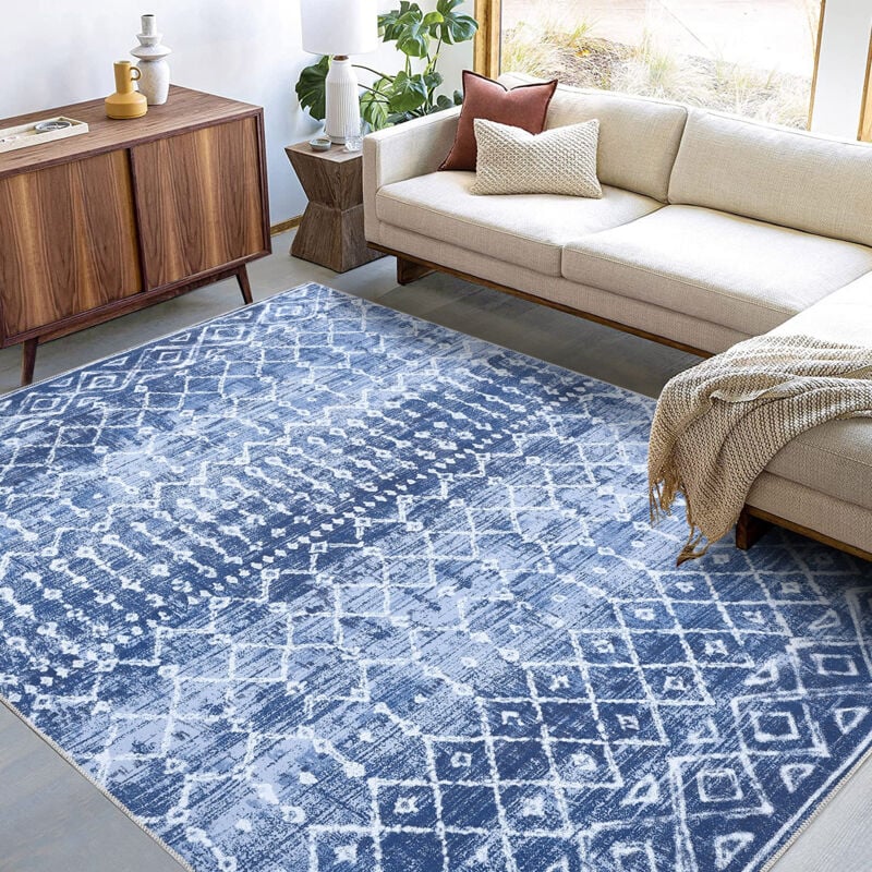 Lunsy - Tapis de salon ou de chambre moderne,120x170CM,lavable et antidérapant,Tapis Doux pour Salon Chambre Canapé,bleu