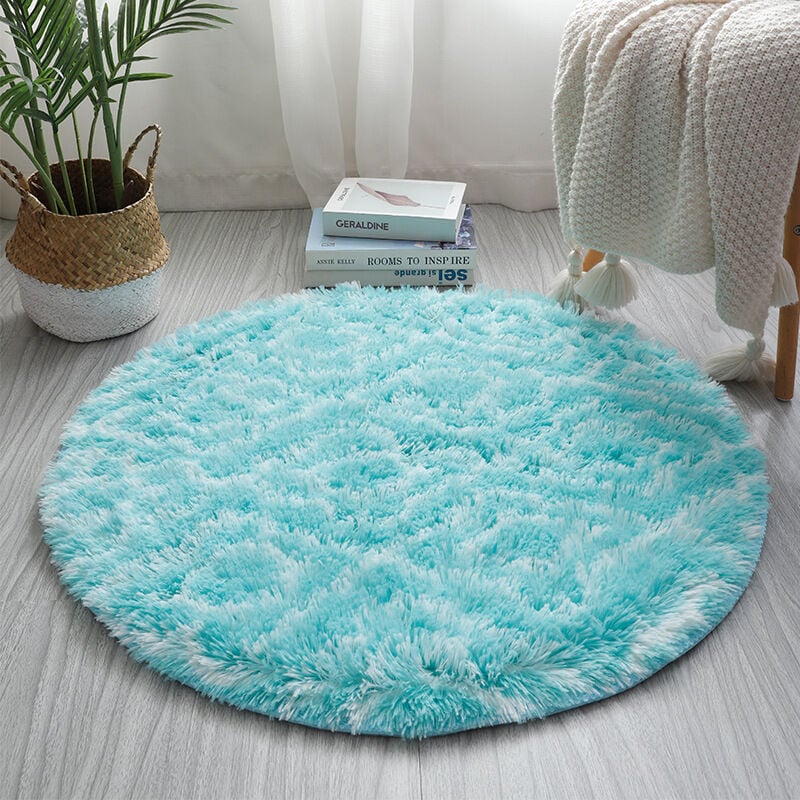 Tapis Rond Shaggy Uni Poils Longs Tapis Salon Chambre (Bleu - 80x80cm)