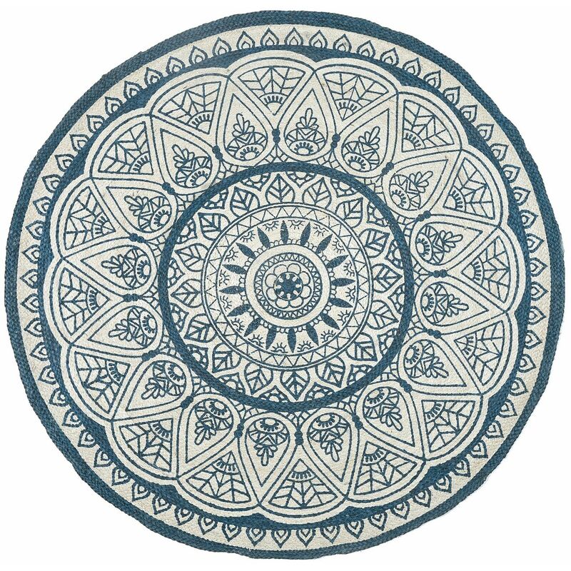 Beliani - Tapis Rond Bleu Motif Mandala Tendance en Jute ø 120 cm pour Chambre ou Salon Oriental