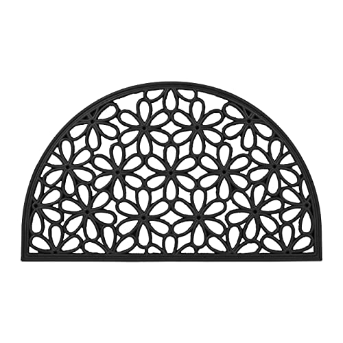 Relaxdays 10020195 Paillasson tapis de sol antidérapant en caoutchouc motifs fleurs résistant porte entrée garage couloir extérieur L x l 75 x 45 cm noir