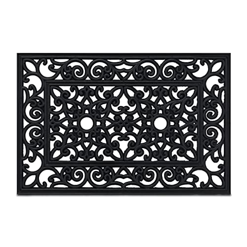 relaxdays Paillasson Caoutchouc, 45x75 cm, antidérapant, résistant, caillebotis extérieur, Tapis entrée, Ornements, Noir, 1 unité