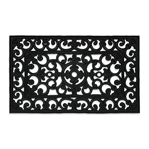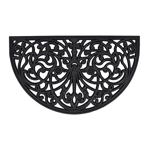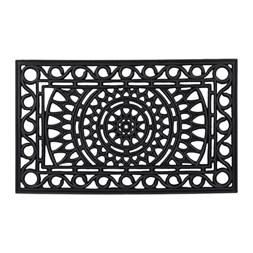 Relaxdays Paillasson Caoutchouc, 75 x 45 cm, antidérapant, résistant, extérieur, Tapis d’entrée, Ornements, Noir