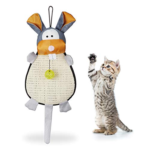AIME Tapis Griffoir pour Chat, Tapis en Sisal Résistant, Tapis avec Jouet souris, Dimension 35x55CM