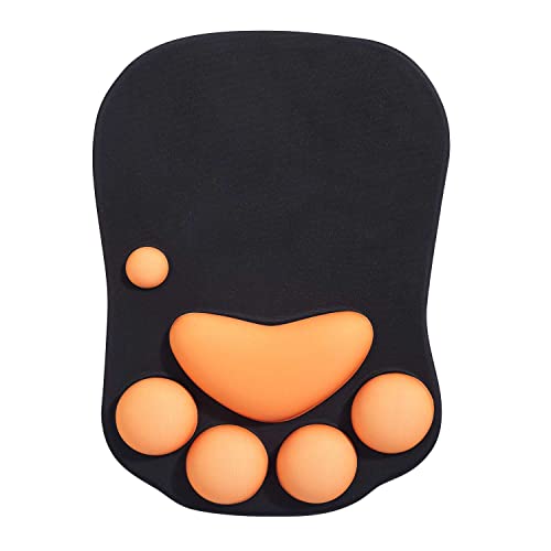 DOBAOJIA Tapis de Souris avec Repose-Poignet, Motif Patte de Chat, Tapis de Souris Ergonomique 3D en Silicone, Fond antidérapant, pour la Maison/Le Bureau/Les Jeux, Noir et Orange