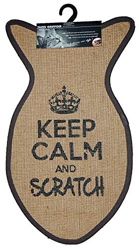 Wouapy - Tapis Griffoir pour Chat - Tapis Tête de Chat en Sisal - Tapis a Gratter - Design & Tendance - Inscription « Keep Calm and Scratch » - Gris Anthracite 55 x 31 x 0,7 cm