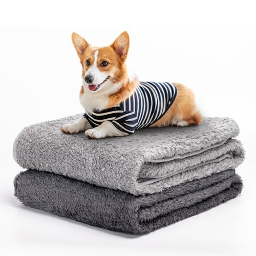 Nobleza 2 x Couverture en Peluche Douces Tapis pour Chien Chat Lavable, Tapis Chiens Chat Lapins et Autres Animaux de Compagnie, Plaid Polaire Animaux, Gris Foncé et Gris Clair, 100 * 80 cm