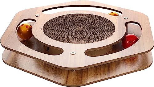 Flamingo 3 en 1 Grattoir Chat r - Carton Griffoir - Jouets Chat Tapis à Gratter pour Chat avec 3 Jouet Balles et Herbe À Chat