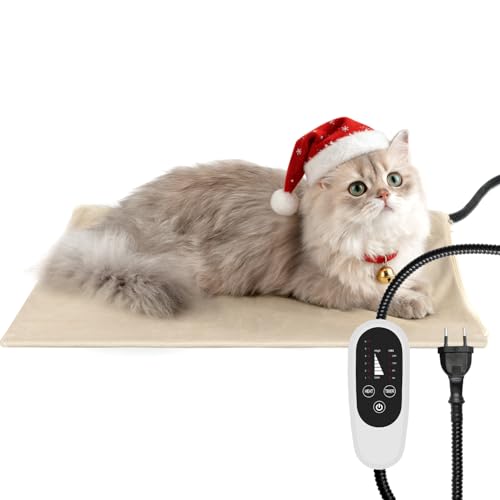 NICREW Tapis Chauffant Chien Chat L 40x70cm avec Minuterie Auto Off, Coussin Chauffant Electrique pour Animaux Temperature Reglable avec Cordon Anti Morsure