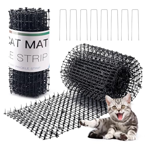 Hmyomina Tapis dissuasif pour Chat avec Pics - 4 m - Tapis dissuasif pour Chat - pour intérieur et extérieur - avec 8 agrafes de Jardin - 2 pièces Noires