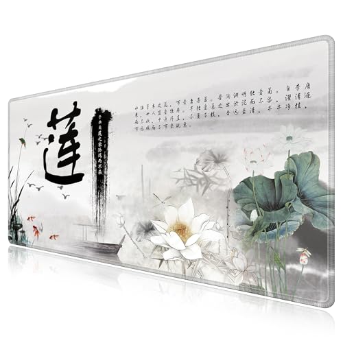 LL-COEUR Tapis de Souris Extra Large à Motif 120x60x0,3cm, XXL Tapis de Table Clavier avec Base en Caoutchouc Antidérapant (1200x600x3mm, Lotus 2)