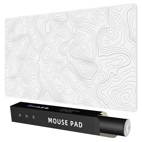 Rinaze Grand tapis de souris de jeu avec topographie blanche, tapis de clavier antidérapant avec tapis de souris multifonction, confortable, grand XXL, accessoires de bureau pour ordinateur, maison et