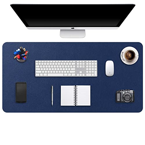 DOBAOJIA Sous-Main Bureau, Tapis de Bureau, Tapis de Clavier et Souris, Tapis de Portable, Pad Écriture, Mouse Pad, pour Bureau/Maison/Gaming, PU Étanche + Suède Antidérapant 60 x 35cm (Bleu Foncé)