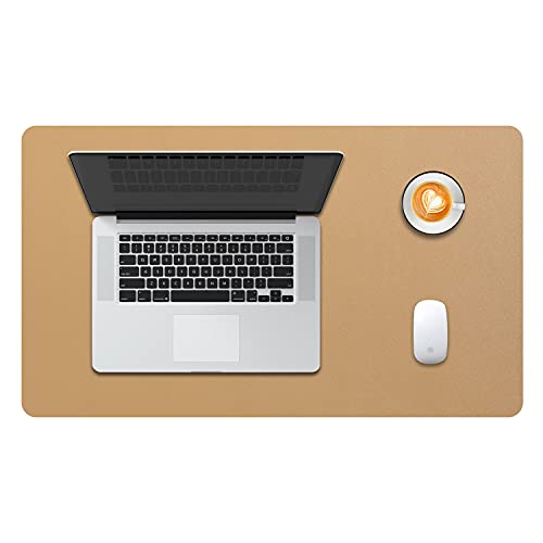 DOBAOJIA Sous-Main Bureau, Tapis de Bureau, Tapis de Clavier et Souris, Tapis de Portable, Pad Écriture, Mouse Pad, pour Bureau/Maison/Gaming, PU Étanche + Suède Antidérapant 70 x 35cm (Beige)