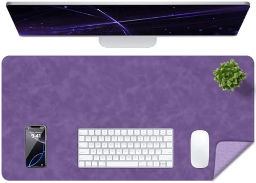 BLESWIN Sous-main de bureau en cuir vieilli imperméable, facile à nettoyer, tapis de souris et de clavier, tapis d'écriture (violet, 80 x 40 cm)