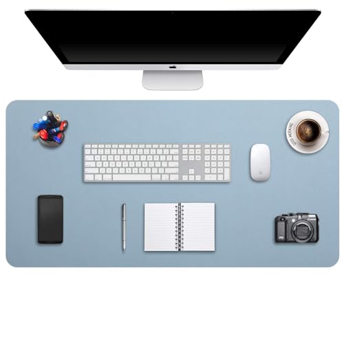DOBAOJIA Sous-Main Bureau, Tapis de Bureau, Tapis de Clavier et Souris, Tapis de Portable, Pad Écriture, Mouse Pad, pour Bureau/Maison/Gaming, PU Étanche + Suède Antidérapant 60 x 35cm (Bleu Grisâtre)