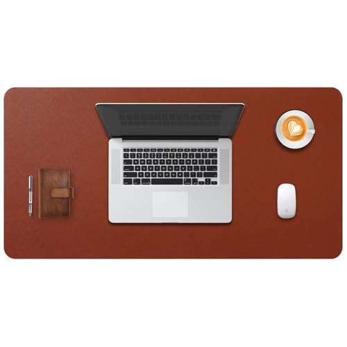 DOBAOJIA Sous-Main Bureau, Tapis de Bureau, Tapis de Clavier et Souris, Tapis de Portable, Pad Écriture, Mouse Pad, pour Bureau/Maison/Gaming, PU Étanche + Suède Antidérapant 90 x 43cm (Brun)