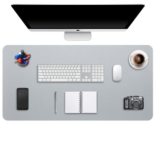 DOBAOJIA Sous-Main Bureau, Tapis de Bureau, Tapis de Clavier et Souris, Tapis de Portable, Pad Écriture, Mouse Pad, pour Bureau/Maison/Gaming, PU Étanche + Suède Antidérapant 60 x 35cm (Gris)