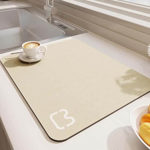 Hixingo 2.5mm Tapis de Bain Antidérapant, Tapis Salle de Bain Diatomite Absorbant Mat Tapis Douche Séchage Rapide, Microfibre Tapis Vaisselle Tapis d'Entré (40x60cm,Gris doré 12)