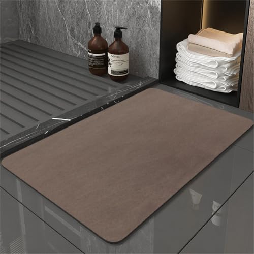 Hixingo 4mm Tapis de Bain Antidérapant, Tapis Salle de Bain Diatomite Absorbant Mat Tapis Douche Séchage Rapide, Microfibre Tapis Vaisselle Tapis d'Entré (40x60cm,Brun)