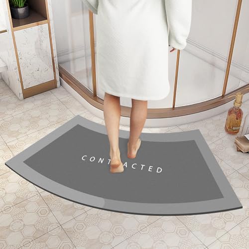 PRELGOSP Tapis de Douche Angle, Antiderapant Tapis de Bain Incurvé, Super Absorbant Diatomite Tapis Salle de Bain Forme D'éVentail pour Sortie de Cabine Douche, Lavable en Machine,Gris,45x100cm