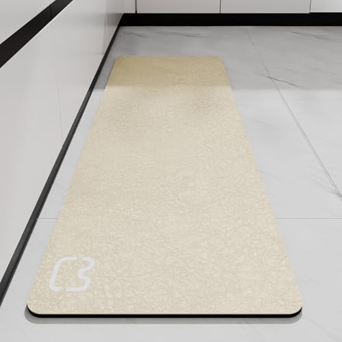Hixingo Tapis de Bain Antidérapant à Rayure Minimaliste Tapis Salle de Bain Diatomite Absorbant, Tapis Douche Séchage Rapide, Microfibre Tapis Vaisselle Tapis d'Entré (60x90cm,Rayures Beiges)