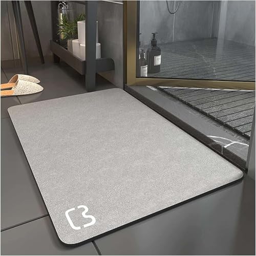 Hixingo Tapis de Bain Antidérapant Ovale, Tapis Salle de Bain Diatomite Absorbant, Tapis Douche Séchage Rapide, Microfibre Tapis Vaisselle Tapis d'Entré (40x60cm,Gris)