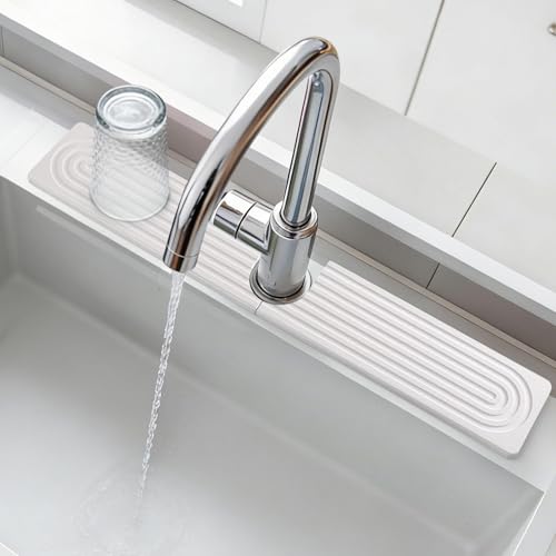 AOWVUTS Tapis de Robinet pour Evier de Cuisine Contour de Robinet Absorbant Tapis Plateau en Pierre Diatomite Protection Contre Les Éclaboussures Tapis d'Évier pour Comptoir de Salle de Bain (Blanc)