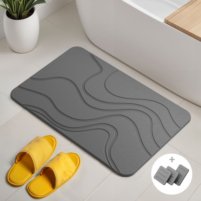 Tapis de bain en pierre de diatomée, 40 x 30 cm, antidérapant, absorbant, en diatomite, pour cuisine, douche (gris)