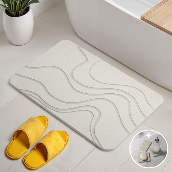 Tapis de bain en pierre de diatomite - Tapis de bain antidérapant à séchage rapide avec motif géométrique - Tapis absorb Étiquette