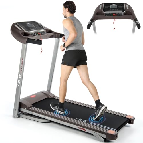 ISE Tapis de Course Inclinable Automatique Pliable, Tapis Course Electrique Motorisé 735W, Tapis de Marche 16KM/H Ecran LCD&12P, Tapis de Sport Fitness Course, Tapis Roulant Bluetooth à Domicile