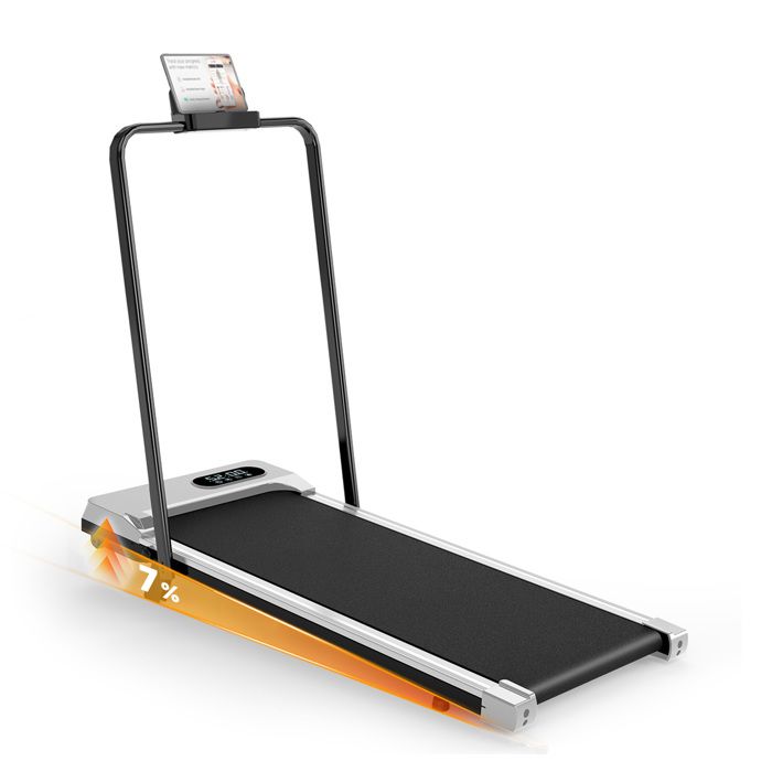 Tapis de Course Pliable Electrique 1-8km/h inclinable 7° avec Télécommande et écran LED pour Bureau & Maison - Argenté