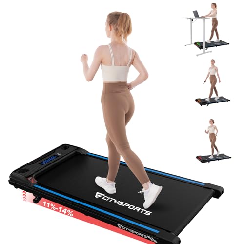 CITYSPORTS Tapis de Course Électrique Inclinable 11–14%, Tapis Roulant Silencieux 1–6 km/h, Écran LED, avec Télécommande, Tapis de Marche pour la Maison et Le Bureau (Blue)