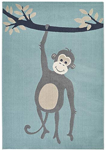 Zala Living Tapis de Jeu pour Enfant Monkey Miles (120 x 170 cm, Supersoft, Compatible avec Chauffage au Sol, certifié Öko-Tex Standard 100) Bleu Clair