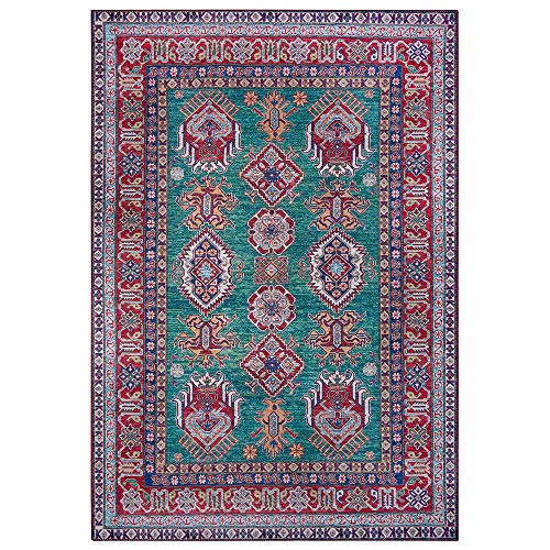 Nouristan Tapis de Salon Design Oriental Aren Kazak (80 x 150 cm, 100% Polyester, Dos en Coton, Facile d'entretien, Bordure Arrondie, Compatible avec Le Chauffage au Sol), Vert et Rouge