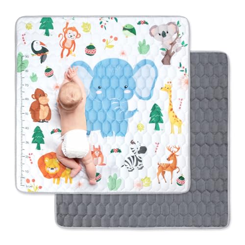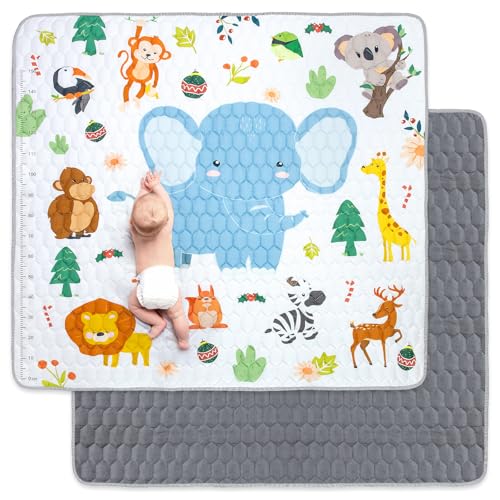 Funsland Tapis de Jeux Bebe, Antidérapant Tapis Rampant Bébé 127x127cm, Animaux Tapis de Motricité Bébé Pliable, Coton Tapis D'éveil Enfants Epais avec Règle, Applicable à Intérieur/Extérieur/Clôture