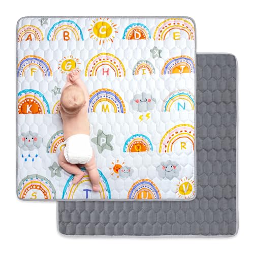 Funsland Tapis D'éveil Bebe Enfant - Antidérapant Tapis Rampant Bébé 127x127cm, Le Rainbow Tapis de Motricité Bébé Pliable, Coton Tapis D'éveil Enfants Epais, Applicable à Intérieur/Extérieur/Clôture