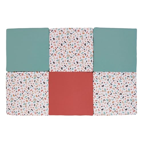 Medi Partners Tapis d'éveil Bebe de sol Motricité bébé parc Enfant jeux 100x100cm - 100% Coton Couverture Naissance pliable Multifonctionnel Mat Épais Doux Eveil Oeko-Tex (Zoo de la menthe)