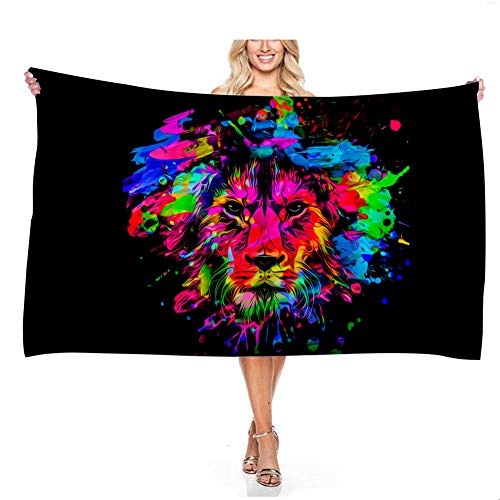 Chickwin Chickw1 Serviette de Plage Microfibre 3D, Rectangulaire Serviette de Bain Couverture de Voyage Légère pour Yoga Natation Sport Tapis de Plage (Lion,75 * 150cm)