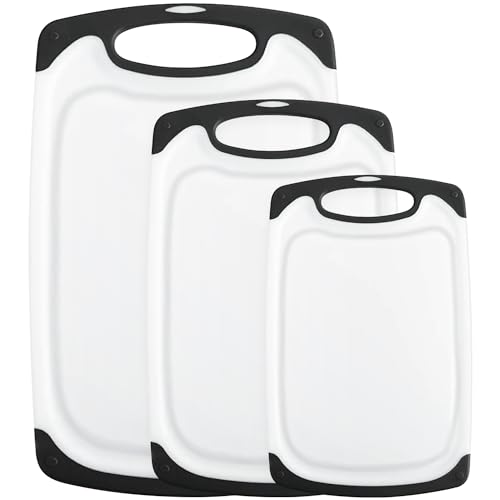 Lot de 3 planches à découper en plastique épais avec rainures pour jus, grands tapis de découpe, réversibles, légères, sans BPA, passent au lave-vaisselle (noir)
