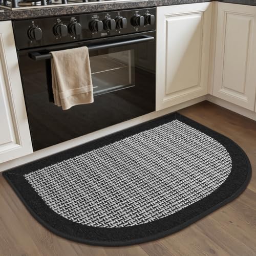 SIXHOME Tapis de Cuisine Devant Evier Antidérapant en Caoutchouc et Lavable Tapis Lavable en Machine Absorbant Noir 50 * 80cm Semi-Elliptical