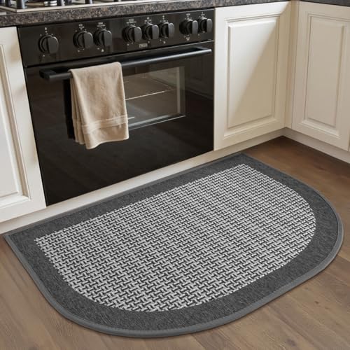 SIXHOME Tapis de Cuisine Devant Evier Antidérapant en Caoutchouc et Lavable Tapis Lavable en Machine Absorbant Gris 50 * 80cm Semi-Elliptical