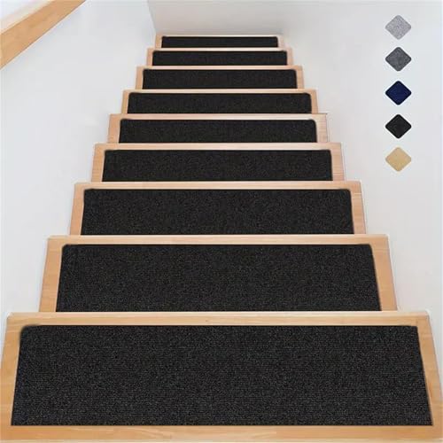 Hearda Tapis Escalier, Antidérapant Tapis Escalier Marche Lot de 15, Muet Moquette Escalier Couvre Marche Escalier Tapis d'Escalier Autocollants Carpette pour Enfants, Aîné, Appartement (15 pc,Noir2)